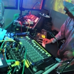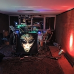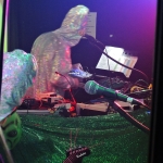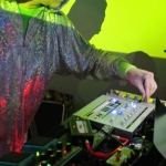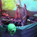 Die Alieninvasion wurde von keinem geringeren als Bernd-Michael Land aka „Aliens Project“ (Offenbach) angeführt, den ich damals bei einer kleinen intimen Session im Atelier der Zukunft schon einmal erleben durfte… Leider kam ich etwas zu spät. Die“Andromedans“ mit Ihren freakigen Alienkostümen machten eine wirkliche abgespacte Musik. Ich würde mir das ganze nicht zuhause anhören… Aber auf der Party hat es zu dem Rahmen gepasst und die Leute haben wirklich ausgelassen dazu getanzt.